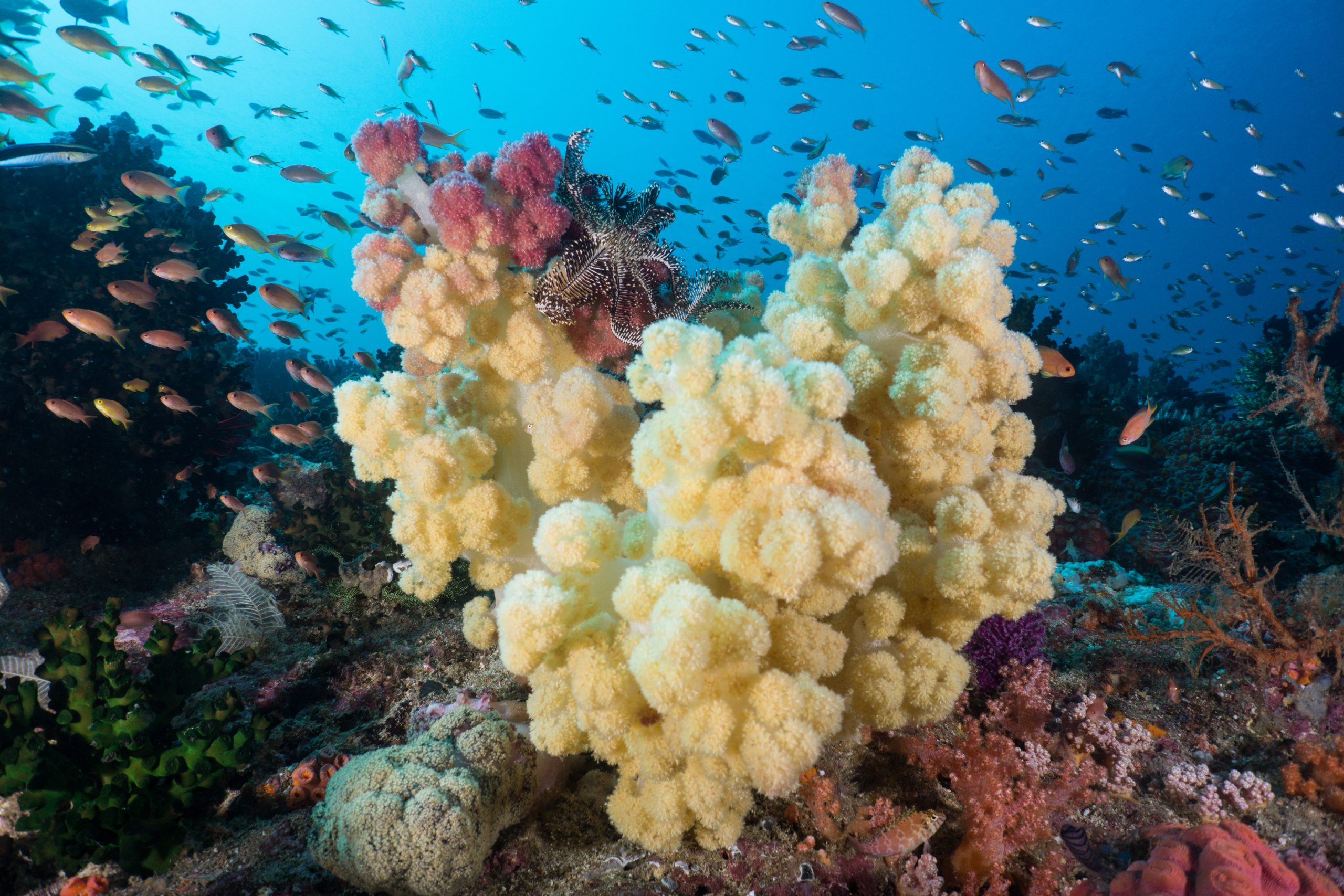 The western tip of North Sulawesi is home to the Bunaken National Marine Park, made up of a group of five islands predominantly featuring clear aquamarine water and stunning vertical coral encrusted walls. These islands are conveniently located only 10 miles from Manado City and offer high quality diving close to the port. The northern tip of the mainland is home to the Tangkoko National Park with the Bangka island group lying a short distance from shore. On the east side of North Sulawesi, lies the major port of Bitung and the adjacent Lembeh island which hosts some of the best critter diving in the world.